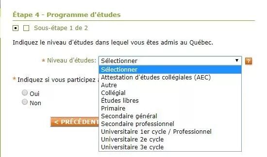 对于外国留学生而言,特别值得注意的是,CAQ上面的“学习等级”(niveau d'études)。
